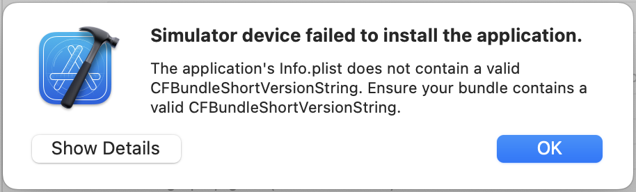 내용은 Info.plist does not contain a valid CFBundleShortVersionString