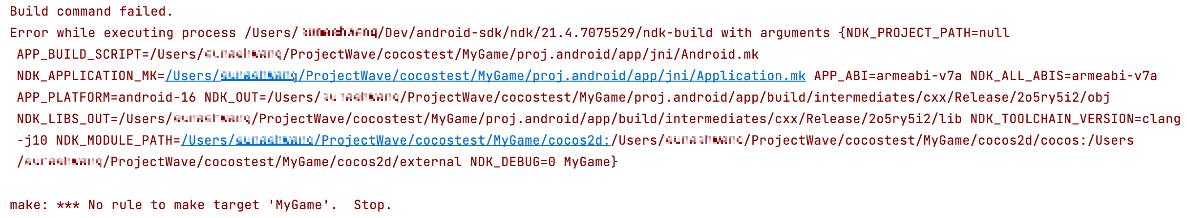 make: *** No rule to make target 'MyGame'. 메시지와 함께 Stop!
