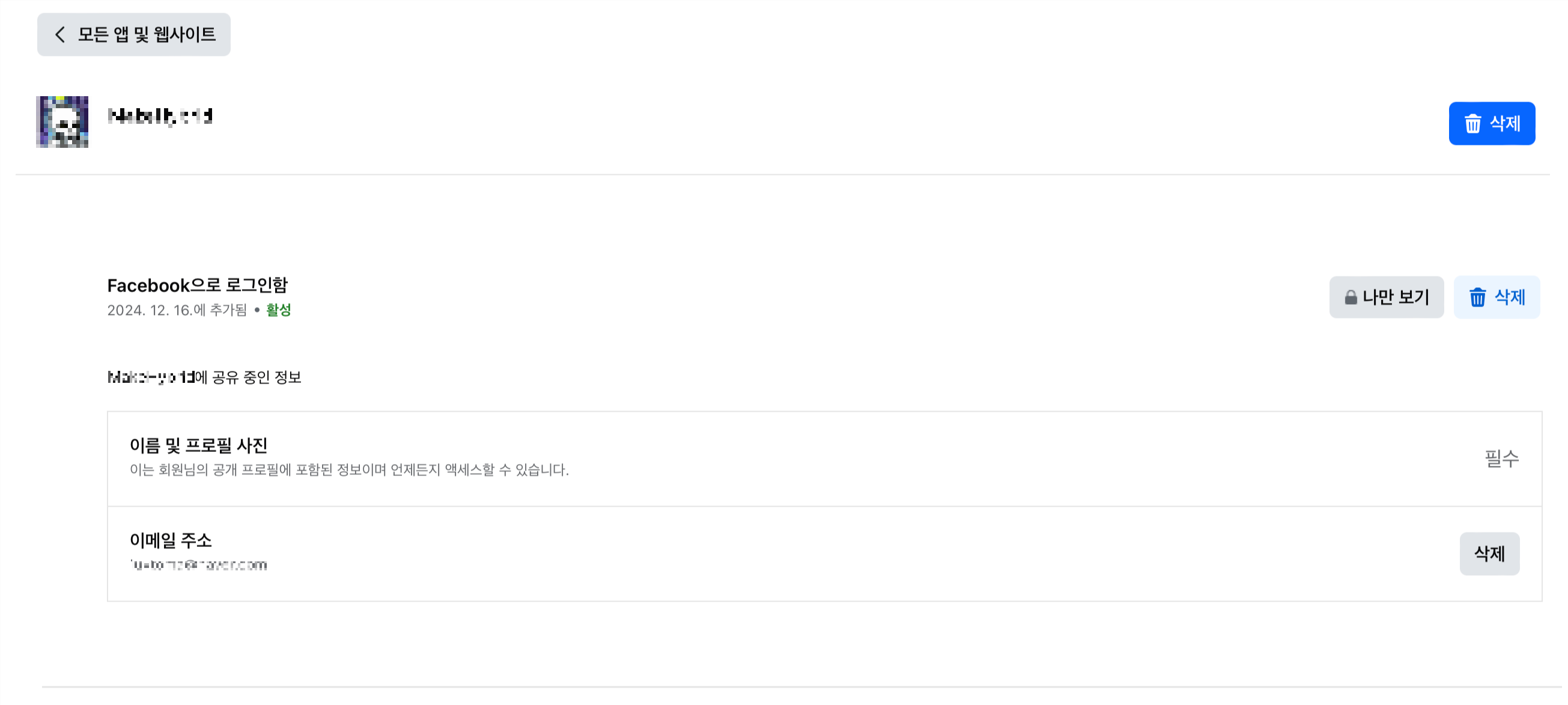 2024년 버전 페이스북으로 로그인한 앱 권한 삭제하는 방법