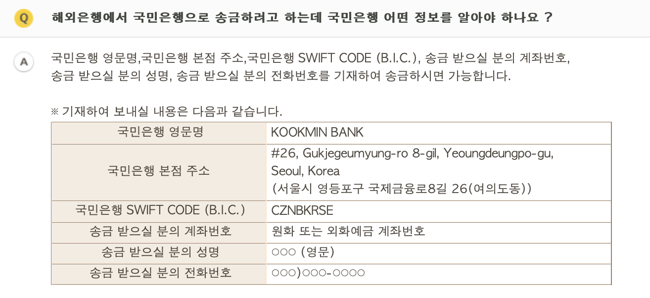 KB 국민은행 SWIFT CODE 스위프트 코드