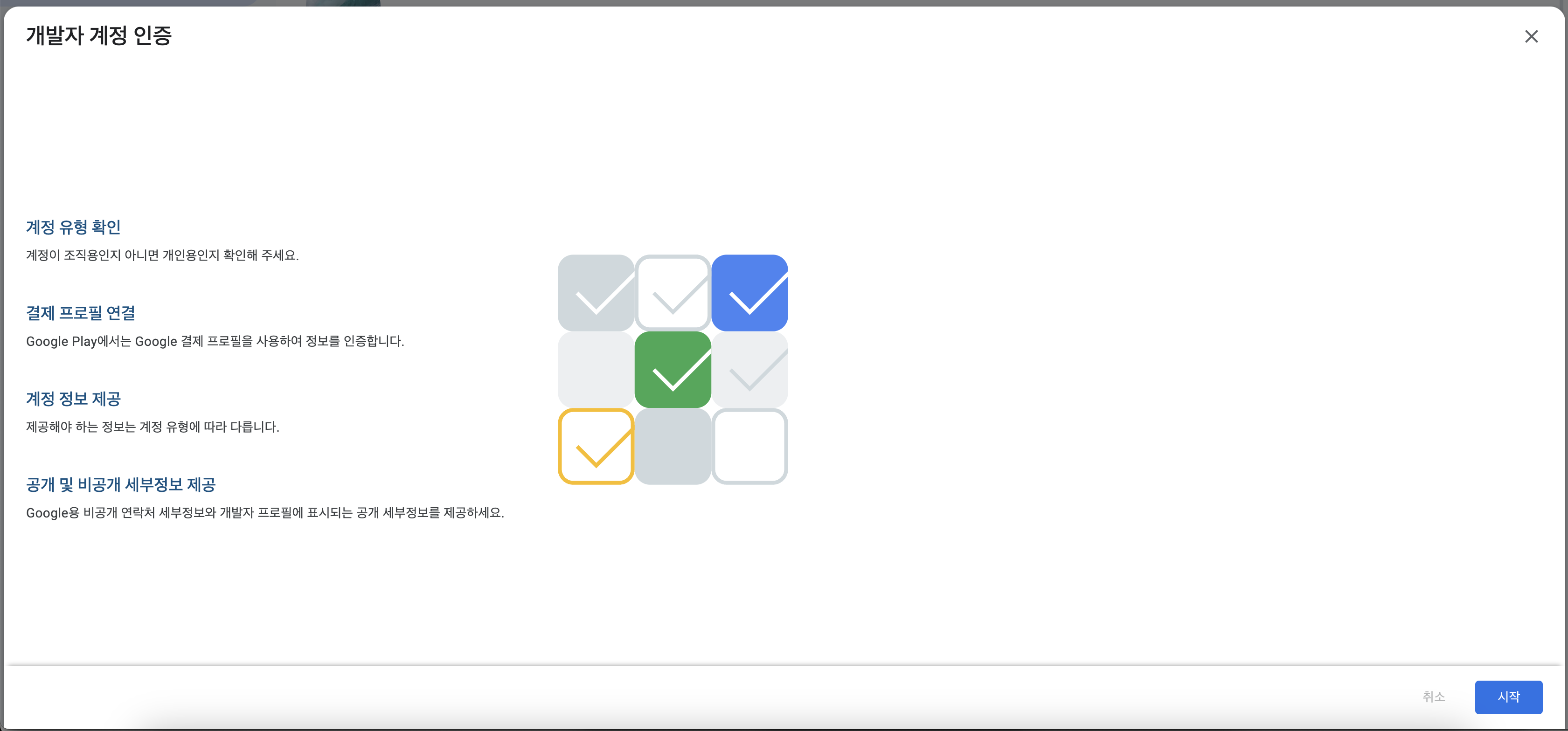 시작하기를 누르면 개발자 계정 인증을 시작합니다.
