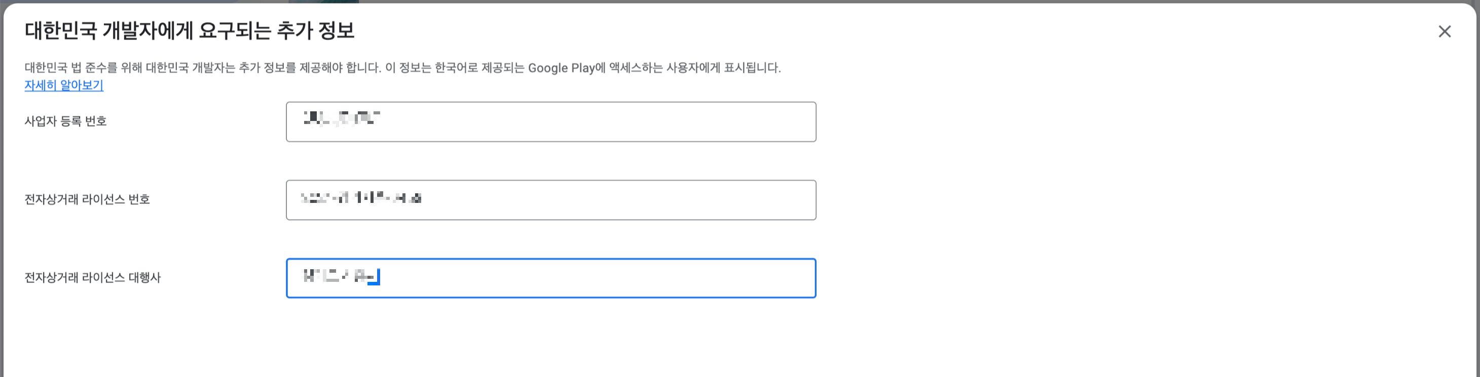 사업자 등록 번호, 전자상거래 라이선스 번호, 전자상거래 라이선스 대행사