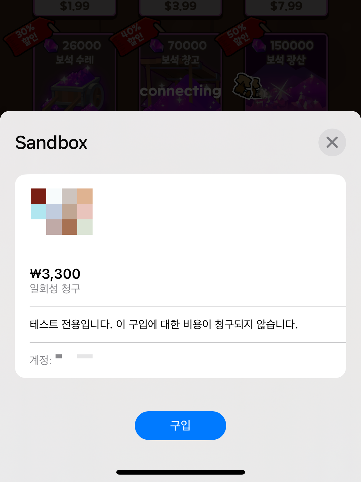 iOS 앱에서 인앱 결제 테스트를 진행할 때 애플에서 제공하는 테스트 전용 계정입니다.